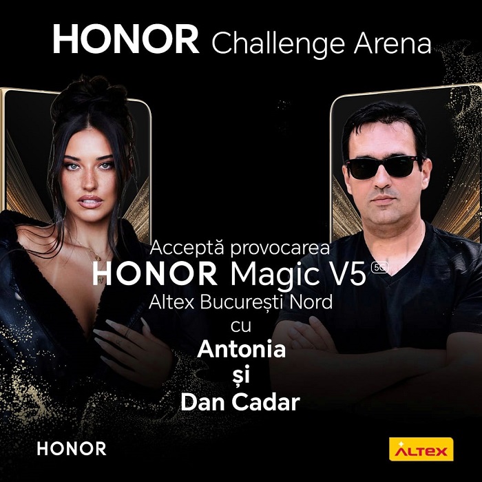 HONOR Challenge Arena – Antonia și Dan Cadar vin sâmbăta aceasta la Altex București Nord într-un eveniment de prezentare a celui mai subțire telefon pliabil din lume, HONOR Magic V5