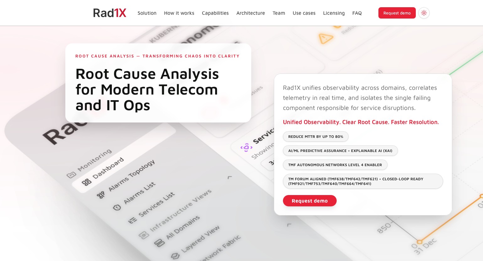 Prin reducerea timpului de identificare a cauzei principale la sub 10 minute în majoritatea scenariilor și diminuarea efortului operațional din centrele de operațiuni (NOC, SOC, IT Ops), Rad1x contribuie la optimizarea costurilor operaționale (OPEX), îmbunătățirea respectării SLA-urilor și creșterea rezilienței serviciilor. Pentru organizațiile din sectoare reglementate precum banking sau energie, platforma sprijină și conformitatea cu cerințele de raportare a incidentelor și de continuitate operațională.